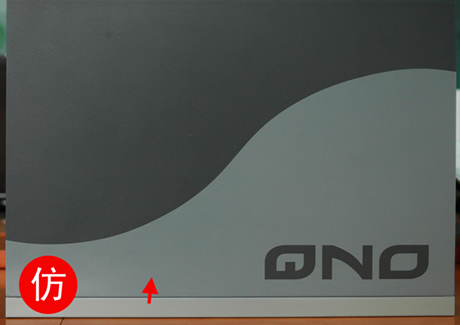 真品前面板顏色接近下蓋顏色,字較粗;假品前面板顏色較深,字較細。