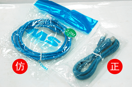 正品網線綁成8字型;假品網線卷成圓型。