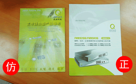正品標題為FVR9208/FVR9416;假品標題為寬頻路由器產品指南。